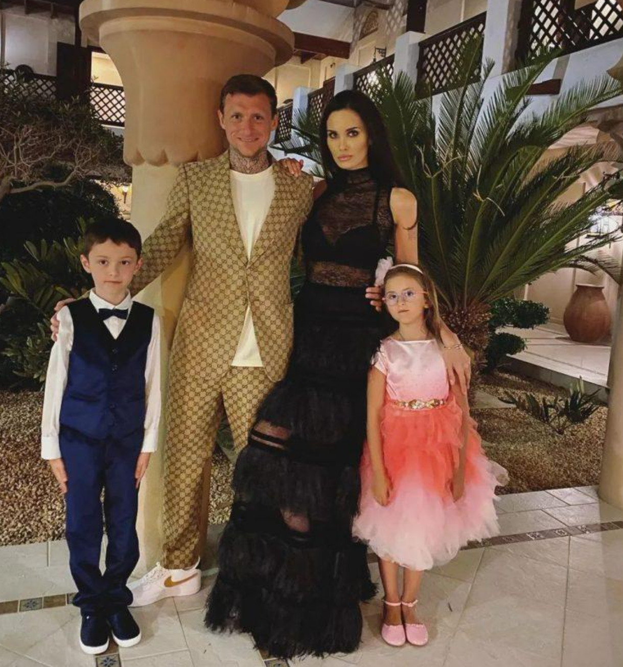 Павел Мамаев и Алана с дочерью Алисой и сыном Аланы от первого брака | Источник: Соцсети